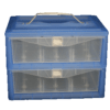 This sturdy plastic storage case accommodates up to 30 cones of thread and has two locking drawers to ensure that they don’t slide open in transit and spill their contents. Each drawer comes with a removable spool spindle tray to make it easy to slide a cone over the spindle and hold it securely in place.